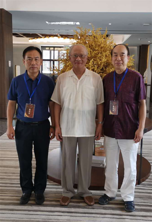 资深媒体人、亚洲微电影艺术节组委会长三角制作中心副主任高翔(左1),与著名诗人黄东成(中),世界华文微型小说研究会会长、作家网副总编凌鼎年合影于大纵湖东晋水城(2020年8月22日)