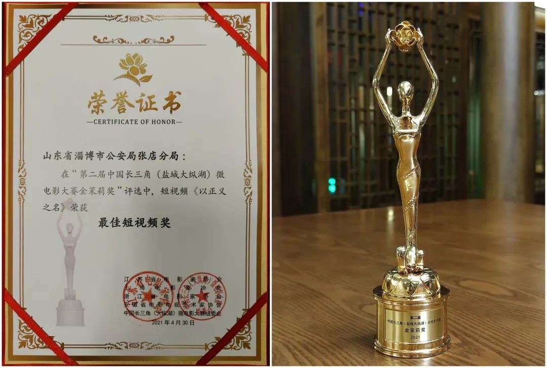 麋鹿送福,鹤舞吉祥,4月30日晚,第二届“中国长三角(大纵湖)微电影大赛金茉莉奖颁奖盛典”在麋鹿和丹顶鹤的故乡——江苏盐城隆重举行,张店公安的微视频《以正义之名》从来自全国各地的一千多部作品中脱颖而出,获得“最佳短视频奖”!