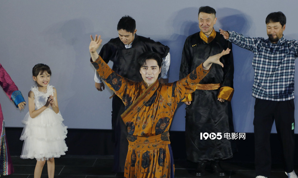 发布会最后,来自内蒙古的阿云嘎现场教学、带领尔冬升、马苏等主创一起跳蒙古舞,在载歌载舞中欢庆影片上映,《海的尽头是草原》将于9月9日正式与观众见面。