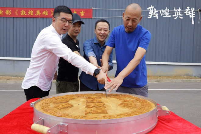 9月9日,由曹盾执导、马伯庸编剧的动作历史题材商业大片《敦煌英雄》宣布开机,导演曹盾、动作导演张鹏、出品人兼制片人张苗等一众主创出席了影片开机仪式。适逢中秋前夕,剧组应景“壕制”巨型月饼,主创以饼寄思,言壮义气魄,敦煌传奇画卷就此展开。