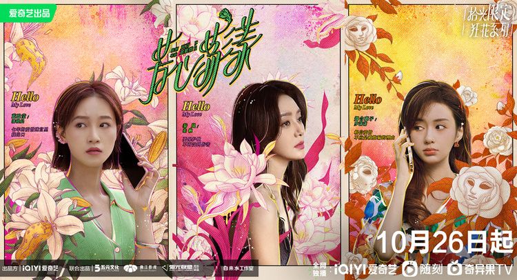 此次曝光的定档预告,以极致欢脱的片段和轻快的音乐勾勒出《芳心荡漾》紧张又抓马的人物关系。以李雪琴的脱口秀幽默开场,芳心三姐妹上演一出抓马狂想曲:张帆与林森(王子异 饰)疑似“一夜情”后翻脸不认人;潘晓晨“制服诱惑”王俊(贺鹏 饰)试图挽回感情,却陷入奇葩三角恋;刚换下青涩学生装的罗潇潇也游走在两个男人之间,开展报复计划。三姐妹与不同男人的纠葛,为剧情留下无限悬念。同时发布的一组单人海报,风格轻快活泼,色彩明艳,角色被花团簇拥在中间,充满馨香,也预告着《芳心荡漾》大胆先锋和漫画般的叙事风格。此外,《芳心荡漾》主要演员也在微博以“泄露”内部聊天记录的无厘头方式,助阵该剧官宣定档。从戏内到戏外,《芳心荡漾》营造出极致、逗趣、离奇又欢脱的整体氛围,大胆疯玩儿,勇敢折腾,不为人生设限。
