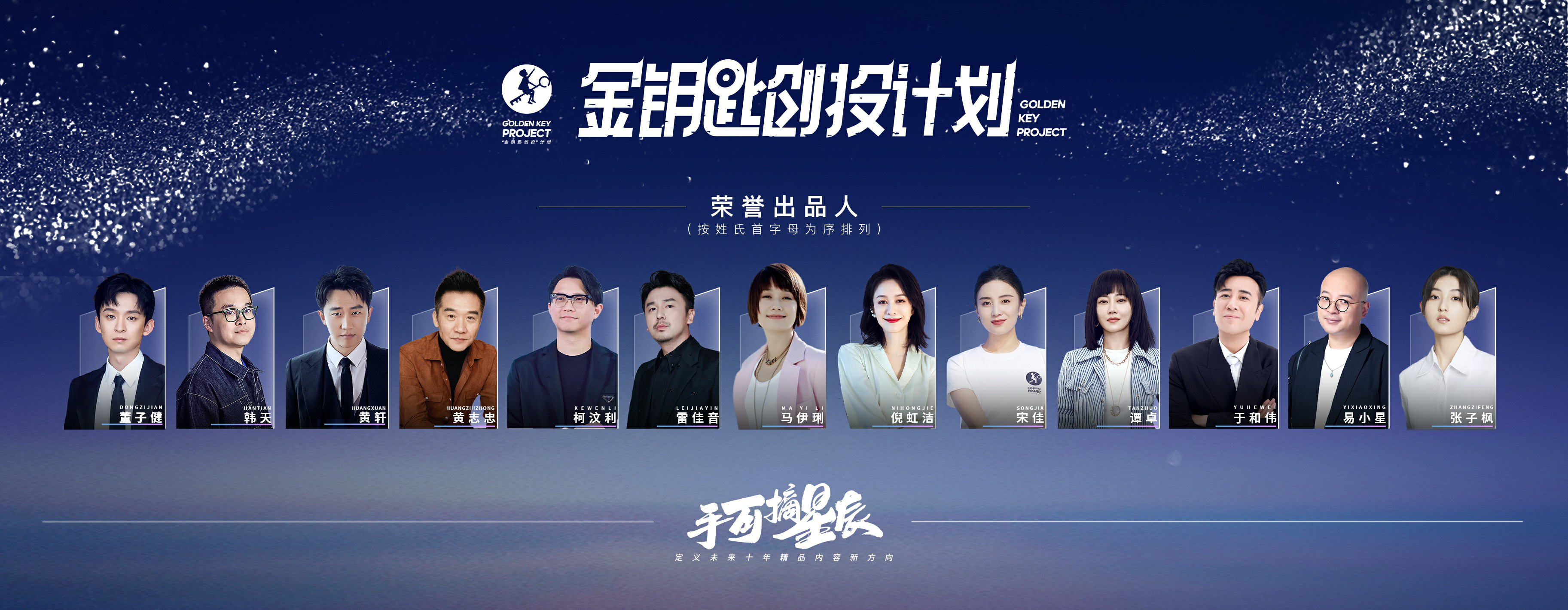 2021年6月“金钥匙创投”计划正式启动作品征集,并诚邀电影人加入荣誉出品人的队伍,为年轻的创作者保驾护航。今年11月,董子健、韩天、黄轩、黄志忠、柯汶利、雷佳音、马伊琍、倪虹洁、宋佳、谭卓、于和伟、易小星、张子枫(按姓氏首字母为序排列)共13位资深电影人宣布加入“金钥匙创投”计划,担任荣誉出品人。他们常年活跃在银幕之上,也常常出现在行业创投活动的评委席中,不遗余力地挖掘、扶持新人创作者。这一次,他们将投身于“金钥匙创投”计划的优秀作品中,为年轻的创作者们传授经验,也为优秀的故事注入资源与能量。