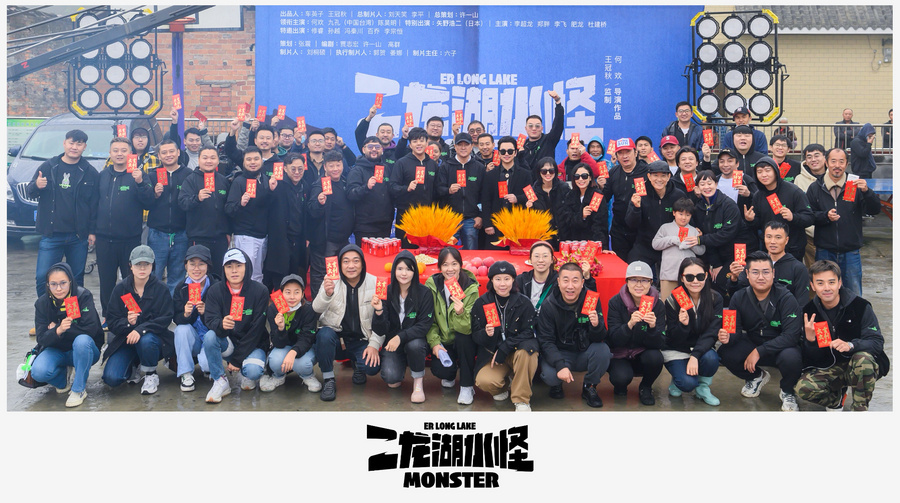 由四平⻘年传媒、AFS四季秋影业联合制作出品的喜剧电影《二龙湖水怪》于2022年11月3日在蜀中名城乐山开机,同时发布电影概念海报。据悉该片由王冠秋担任监制,刘天笑担任总制片人,大碗娱乐签约艺人何欢执导并领衔主演。九孔、陈昊明领衔主演,浩歌(原名:矢野浩二)特别出演,李超龙、郑胖、李飞、肥龙、杜建桥主演,修睿、孙越、冯秦川、百乔、李宗恒特邀出演,阵容豪华引人期待。