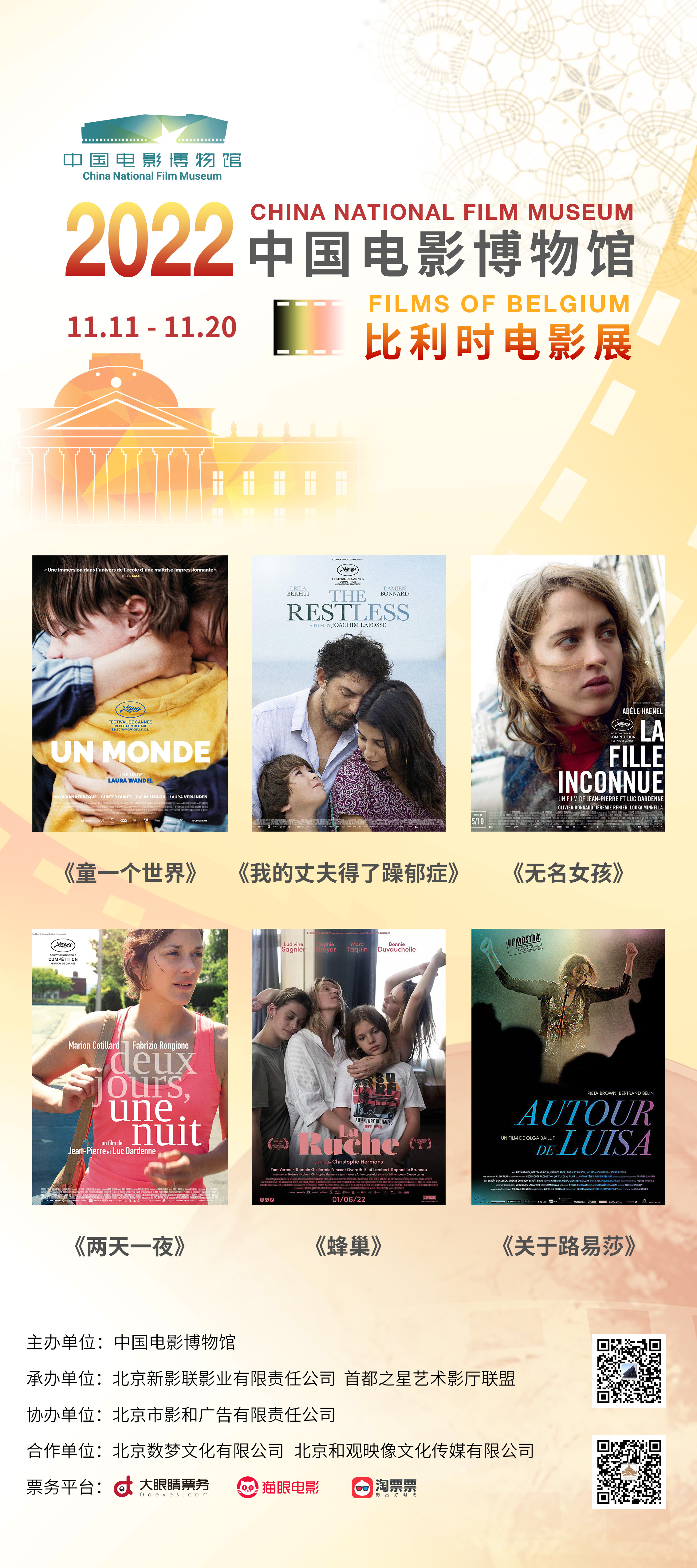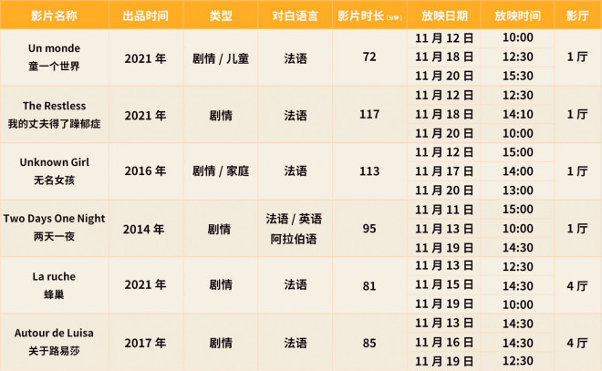 中国电影博物馆2022年国际电影展映的“第三站”——比利时电影展将于11月11日-11月20日举办。在为期10天的影展中,通过18个场次的放映,观众将欣赏到《童一个世界》《我的丈夫得了躁郁症》《无名女孩》《两天一夜》《关于路易莎》与《蜂巢》6部风格独特、质量上乘的影片。