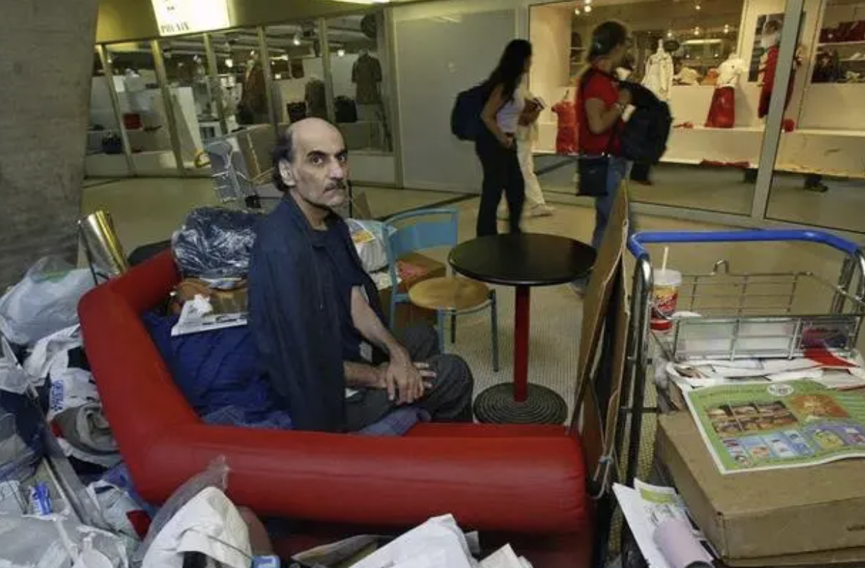 随后,他成了戴高乐机场的“主人”,从起初的法律问题到后来的主动选择,他把一号航站楼当成自己的家,食宿起居都在机场内,在戴高乐机场生活的18年间,纳塞里用手推车、长椅和纸板箱搭建起自己的“居所”,他和机场工作人员成了朋友,也时常和路过的旅客聊天,人们给他起了一个绰号“阿尔弗雷德勋爵”。