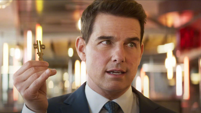 备受关注的影片《碟中谍7》日前曝光了全新的剧照。在剧照上,主演汤姆·克鲁斯正拿着一个钥匙状的物件,与他人对峙。