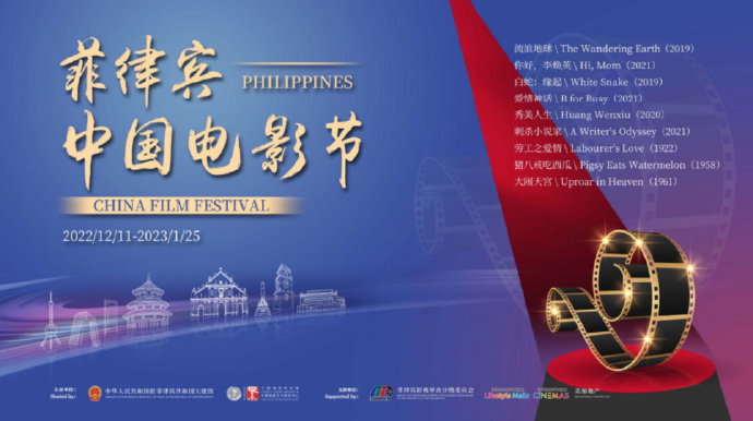 12月11日,由中国驻菲律宾使馆、中国电影资料馆主办的菲律宾中国电影节在马尼拉开幕。本次电影节跨越2023年新年和春节,历时45天,从12月11日至2023年1月25日,并首次向菲律宾电影院线引入高清数字电影格式(DCP)。