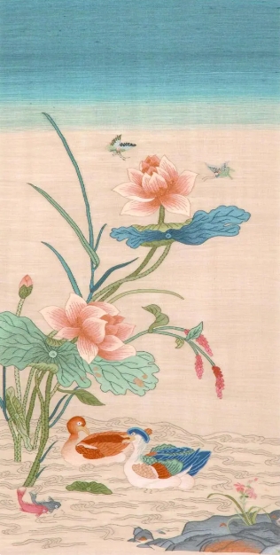 荷花鸳鸯图是影视剧《当家主母》中用到较多的缂丝作品图样,图为顾建东缂丝作品