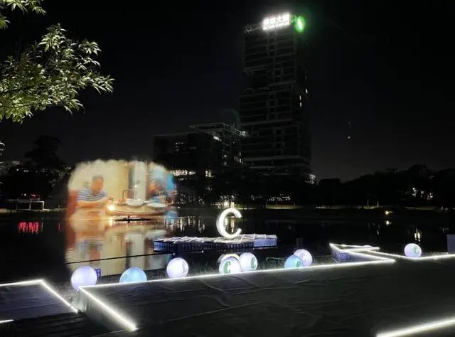 12月24日-25日晚上18:30-19:30,第九届深港城市/建筑双城双年展(深圳)龙岗区国际低碳城分展场在美丽的蝴蝶湖畔,特别呈现了流光溢彩的水幕电影及灯光秀。