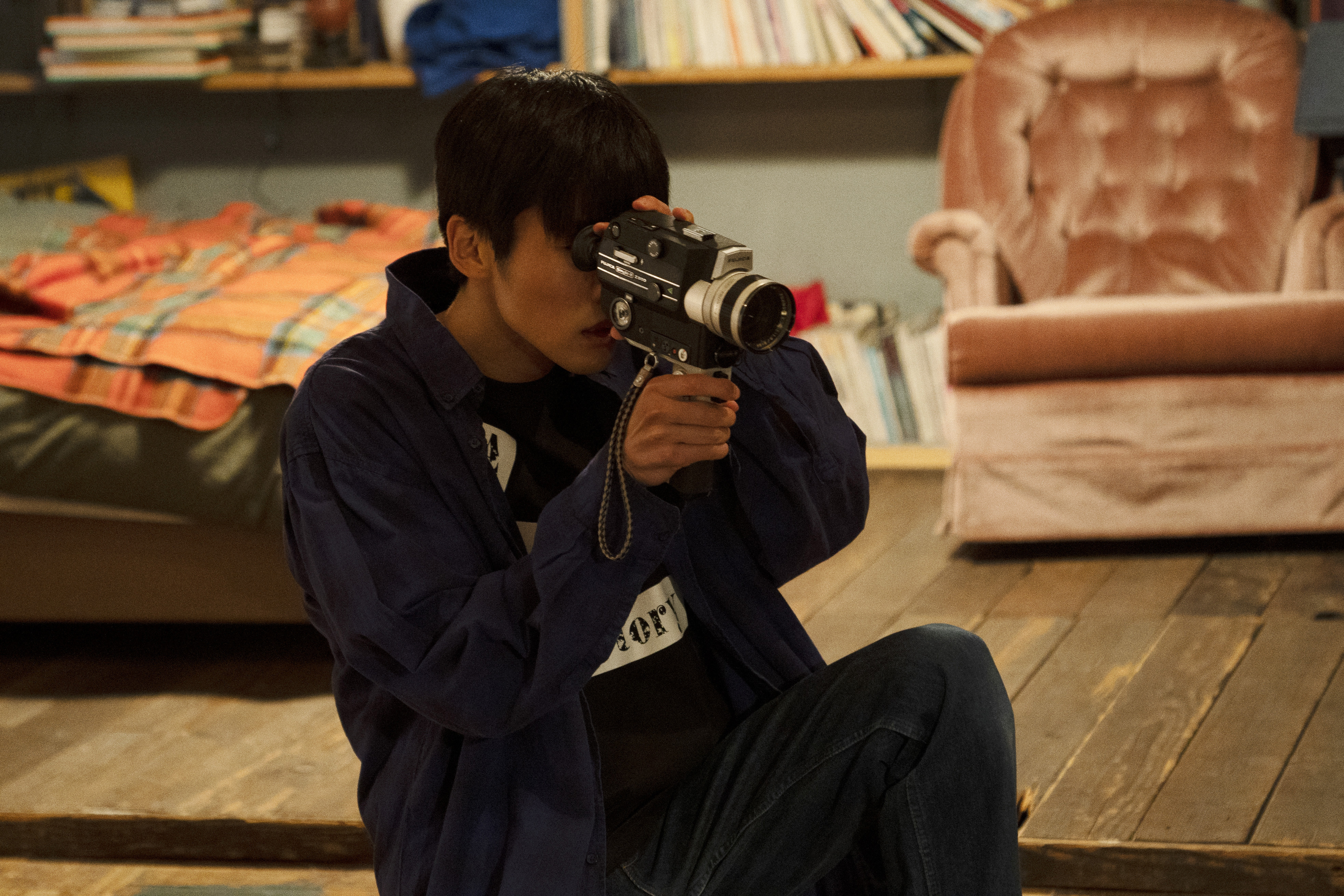 片段中,三角哲彦(目黑莲饰)灯光昏黄的公寓内,收音机中播放着小野洋子和约翰·列侬的《Remember Love》,倚靠在沙发上的正木琉璃,透过窗子一边遥望暮色,一边哼唱。被琉璃那可爱样子吸引的三角君,取出自己的8mm摄影机开始拍摄。