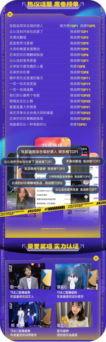 而在酷狗繁星互娱完美整合歌手、歌曲、平台等几大要素的基础上,2022年的音乐战报可谓是硕果累累,不仅爆款金曲频出,在各平台的话题热度也始终高居不下,如同一波一波的浪潮,演绎出了独属于繁星互娱的美妙乐章。