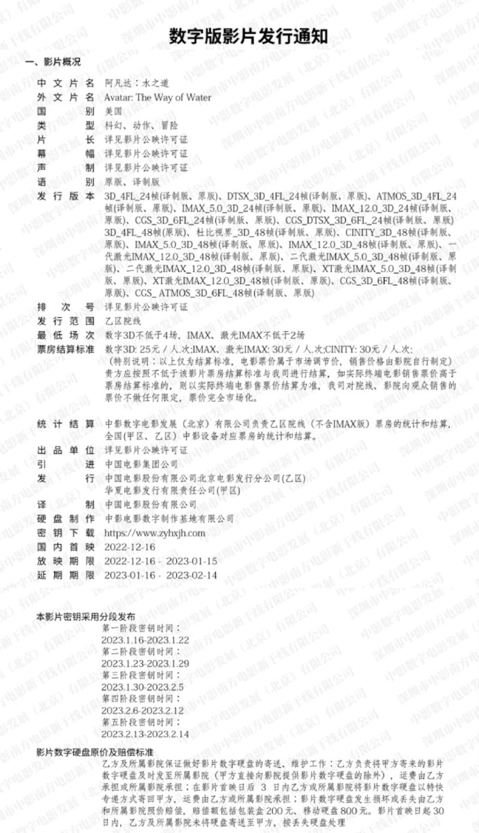 据数字版影片发行通知显示,《阿凡达:水之道》将在中国内地延长上映至2月14日,横跨2023年春节档。