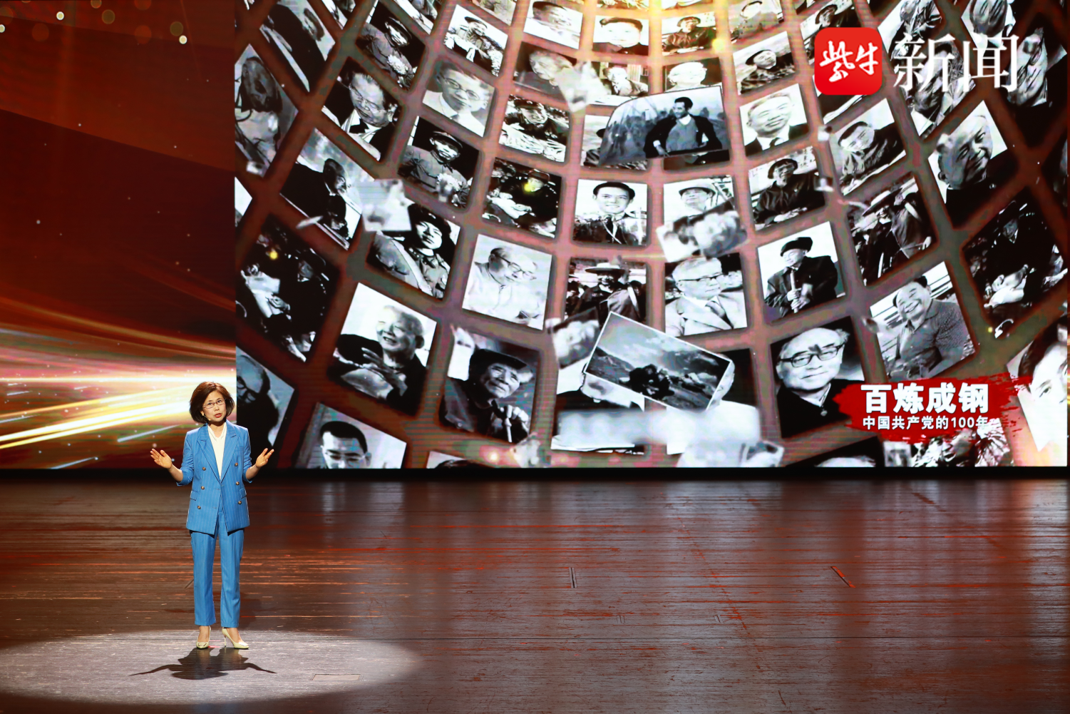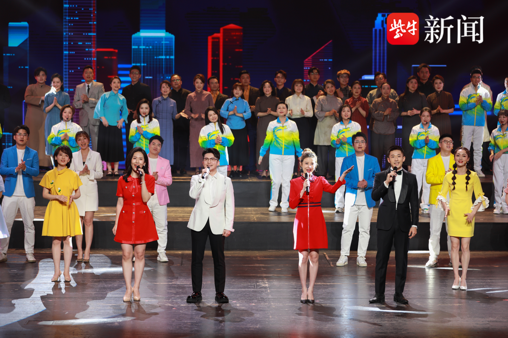 80多位主持人带来的情境歌舞《钟山风雨起苍黄》《超越梦想》《一起向未来》,用歌声与舞姿浓缩岁月流转,通过舞台技术的运用,让不同时代的广电人跨越时空同频对话,致敬一代代广电人的奋斗青春。
