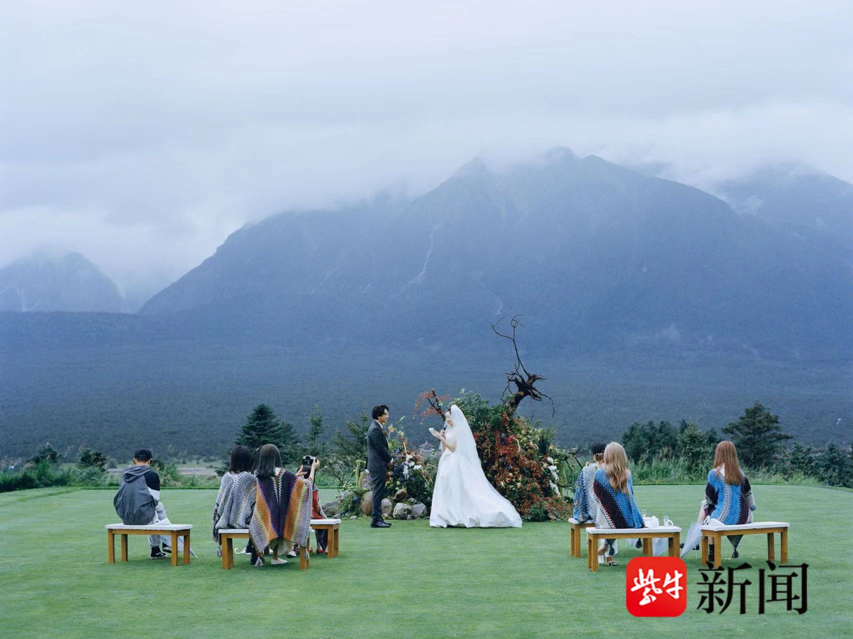 “本来婚礼定在4月,后来经历了两次推迟,最后正巧赶在小林的生日那天,在玉龙雪山下办了一场草坪婚礼。”2022年6月29日,在云南,雪山、细雨、草地,两人筹备许久的浪漫婚礼终于在最亲密的朋友的见证下完车了。“婚礼当晚,我们围着篝火,和当地身着民族服饰的纳西族彝族的居民一起跳起了舞,收获了一场特别有趣的新体验。”