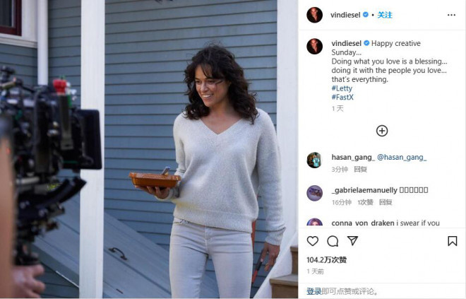 备受关注的《速度与激情10》曝光了全新的片场照。在照片上,影片的女主角之一米歇尔·罗德里格兹以一身居家的形象亮相。她手托食物,从家中缓缓走出。这一幕充满生活化的场景,令人对影片的故事充满了期待。
