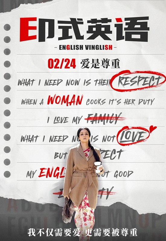 在印度,英语作为官方语言,是阶级地位与身份的象征。在发布的定档预告中,家庭主妇莎希因“英语能力”缺失,备受大男子主义直男癌老公与熊孩子们的冷嘲热讽,陷入社恐与自我怀疑,几乎变成了家庭中相夫教子的工具人,毫无家庭地位。后孤身一人去往美国更是因语言不通难以融入,在尴尬难堪的境遇煎熬下,莎希迎难而上,勇敢改变,怒学英语,最终重塑自我大放异彩,成功赢得家人与朋友的爱与尊重。