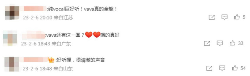 一向在舞台展现飒爽一面的VaVa毛衍七,唱起温柔的抒情歌曲也令人惊喜。歌曲一上线,乐迷好评如潮。“好听,很清澈的声音”“VaVa还有这一面,唱得真好”“太有惊喜了”“纯Vocal巨好听!VaVa真的全能”……