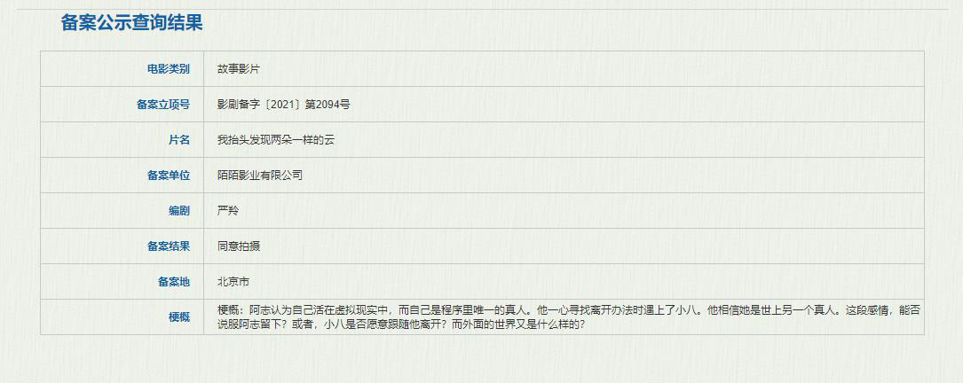 根据电影备案公示显示,这将是部带有科幻色彩的爱情电影,主角阿志认为自己活在虚拟现实中,而自己是程序里唯一的真人。他一心寻找离开办法时遇上了小八。他相信她是世上另一个真人。这段感情,能否说服阿志留下?或者,小八是否愿意跟随他离开?而外面的世界又是什么样的?