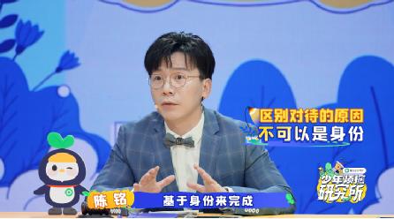想让孩子有所成长,需要让孩子感受到自己的重要性和看到自己的能力。节目中,议事员们分享了很多和二胎的相处趣事。少年议事员周思营谈到:“父母总说,你是姐姐你要让着妹妹。所以尽管和妹妹每天都要吵架,但我还是会下意识的想保护她。”少年议事员崔鐘予却表达了困惑:“我不明白,“孔融让梨”明明讲的是弟弟主动谦让哥哥,父母却要我学着孔融处处让着妹妹。”那么,是不是 “姐姐”和”哥哥“这一称呼从出生就意味着要承担谦让的责任。对此,专家陈默表明:“独生子通常拥有很高的创造性,是因为不需要在情感上耗能量。现在的孩子有很高的心理需求,每一个孩子都需要被尊重被情感满足。”最后,陈铭补充观点:“不能让任何区别对待基于身份来完成,我们无法选择出生的顺序,不该为自己无法选择的事情承担差异性的后果和代价,这就是不公平。”