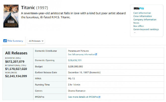 如今《阿凡达:水之道》截至上周末全球票房累计22.44亿美元。其中北美周末收612万美元,累计6.58亿,超过《侏罗纪世界》成为北美影史第九,北美之外收1070万,累计15.86亿。《泰坦尼克号》截至上周末全球票房累计22.43亿。其中北美上周末收229万,累计6.72亿,北美之外收800万,累计15.7亿。