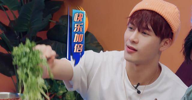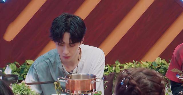 王嘉尔想吃瓜子,走了一圈都没有看到,随即通知工作人员,辛苦他们拿点瓜子过来,说完以后,他就继续烫火锅,夹第一份菜,就是王一博眼前的香菜。