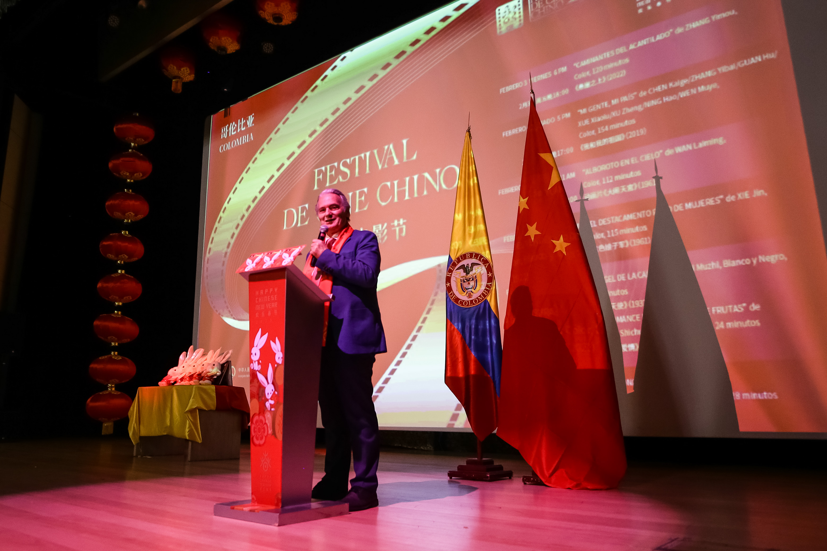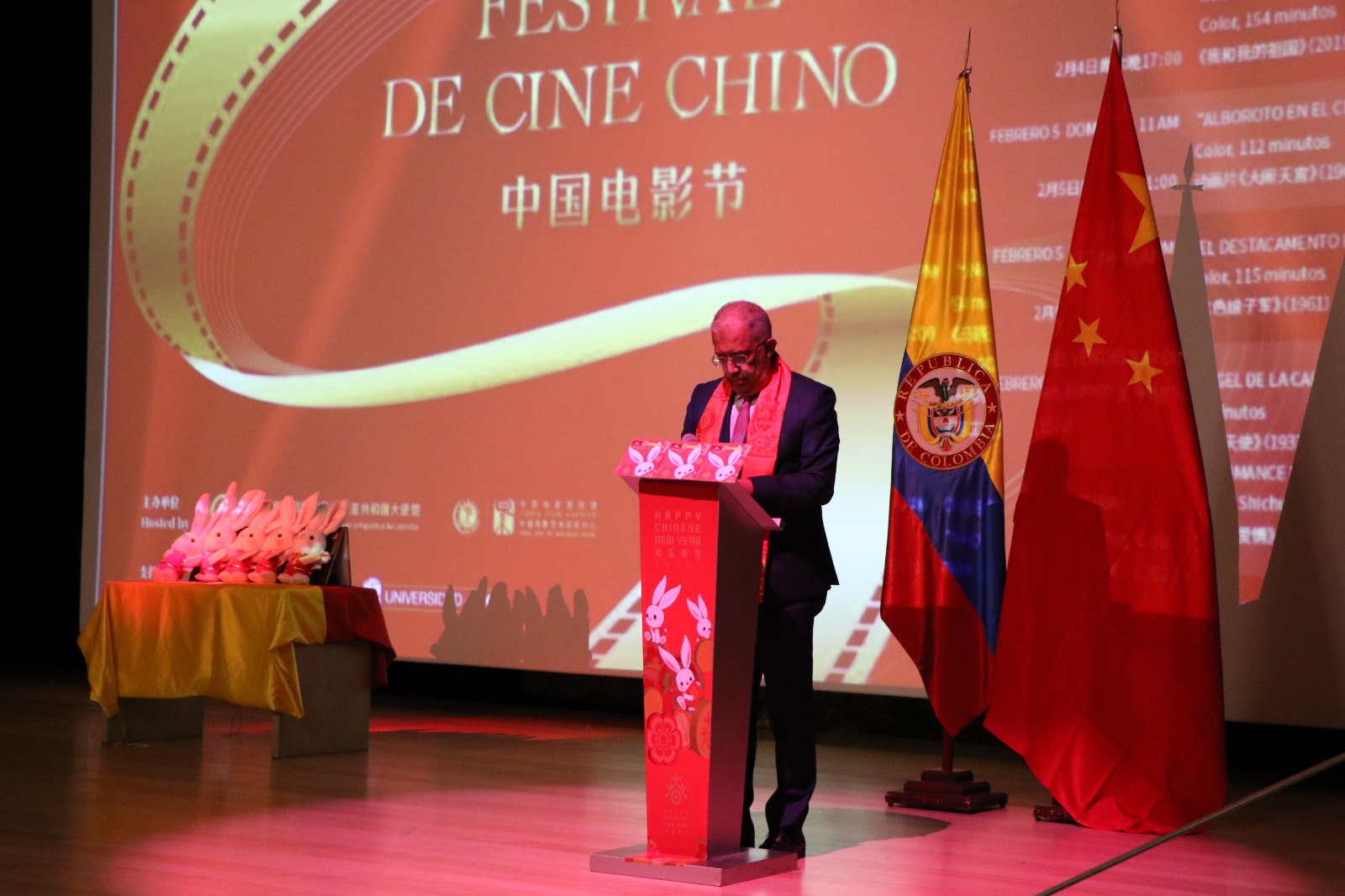 本次电影节为庆祝中国和哥伦比亚建交43周年暨“欢乐春节”活动,出席闭幕式的有中国驻哥大使蓝虎、哥对外关系副外长科伊、候任驻华大使卡布雷拉、前驻上海世博会特使加维里亚、波哥大国际电影节主席拉瓜多、工程设计大学校长索雷尔等近600人。哥前总统桑佩尔、文化部长阿里萨发来视频致辞,庆祝活动成功举办。闭幕式活动开始前,两国钢琴家联手演奏了《茉莉花》《我和我的祖国》等乐曲。
