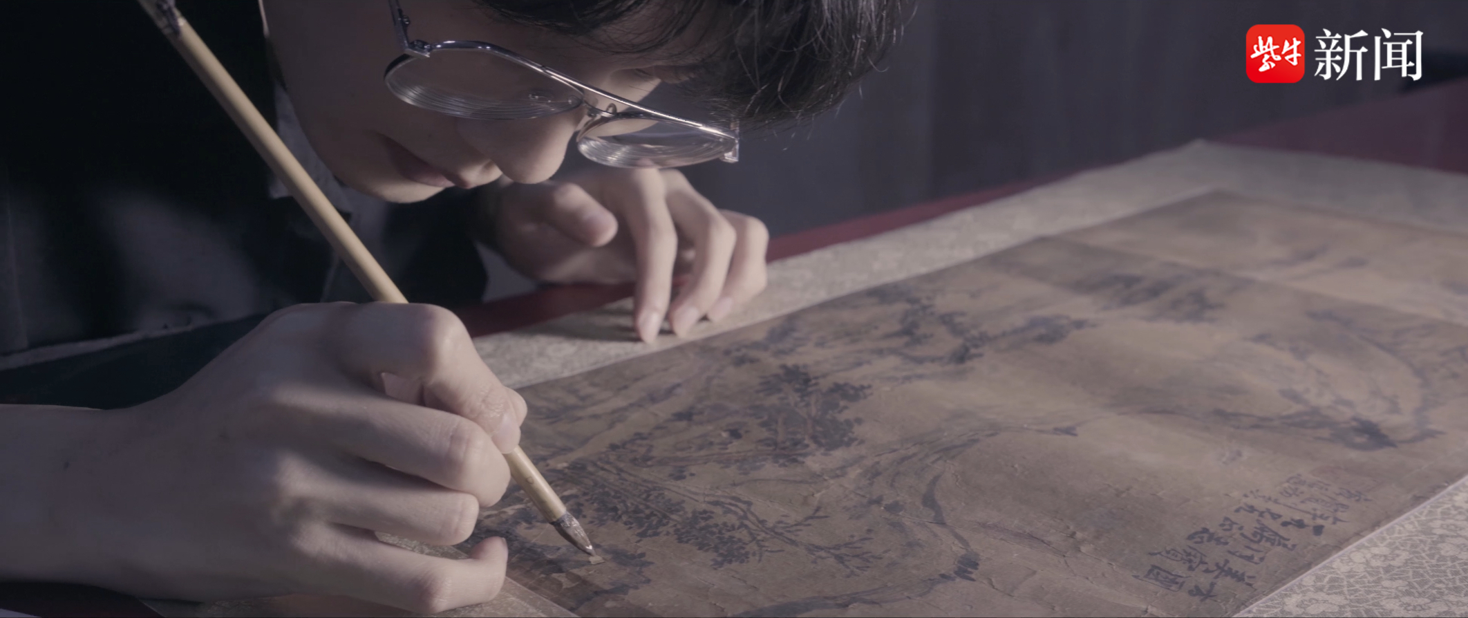 如今阿思在网上有近五十万粉丝,这份严肃枯燥的职业在这位95后的视频中显得十分有趣,《为了修复这幅画,我动用了“科技与狠活”》、《古画修复术,传承了1700年的魔法》、《这位祖宗、让修复师翻大车了》,阿思的视频标题挺潮,视频内容则是俏皮中透着硬核。在一期视频中,阿思要修的画碎成了许多个小纸片,他表示,“现在的是画是越来越过分了,别的至少还有个雏形,这个直接魂飞魄散了。”不过说归说,无论再残破再废旧的画卷,在他手中都能摇身一变恢复如初。视频中,阿思不会回避自己的失误,在另一期视频中,修复中喷壶漏水又没能及时发现,结果造成了纸张断裂,阿思在视频中保留了这段,还作出了科学解释,“纸张受潮较轻部分逐渐干燥时,纤维收缩会产生拉力,这个拉力不会很大,但足以将潮湿的宣纸拉断。”