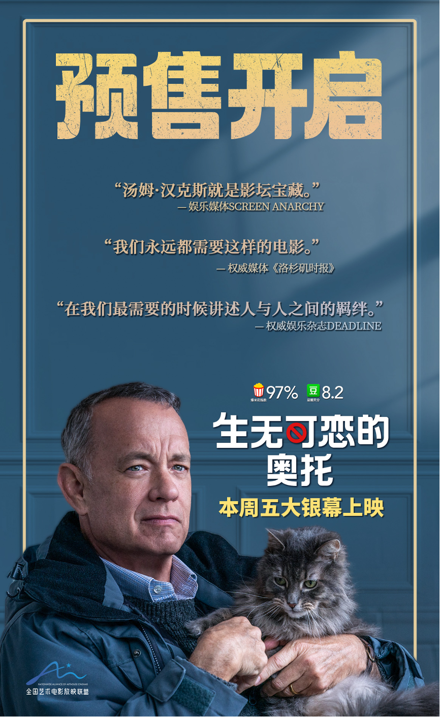 本周五,奥斯卡影帝汤姆·汉克斯主演并担任制片的暖心佳作《生无可恋的奥托》即将于本周五全国艺联专线上映。该片改编自温暖全球的高分畅销小说《一个叫欧维的男人决定去死》,讲述了因爱妻离世而失去生活希望的奥托,在乐天邻居的善意下重拾生活信念的故事。