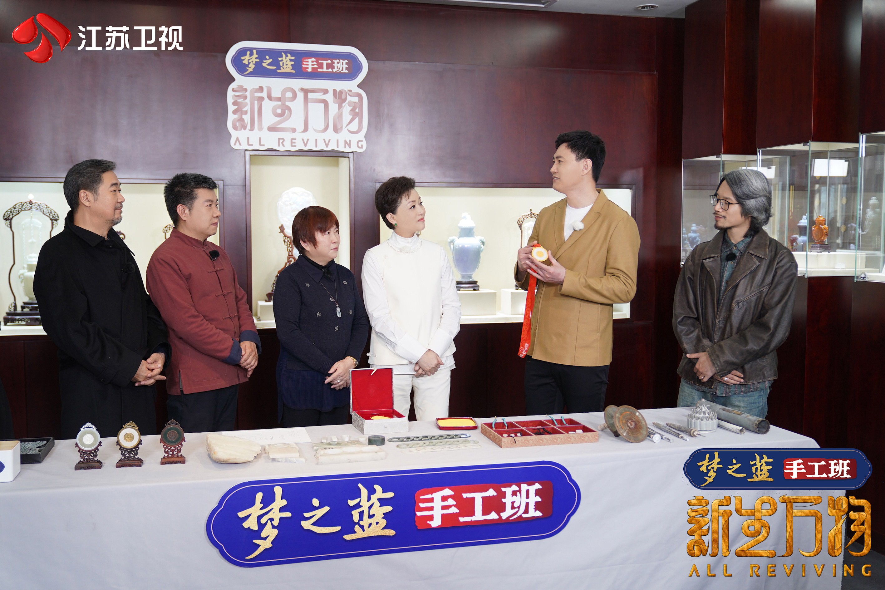 由梦之蓝手工班独家冠名,江苏卫视与阳光媒体集团共同出品的大型非遗焕新纪实节目《新生万物》第十一期即将上线,节目发起人杨澜再次和好友张国立及两位新锐设计师钟华、王猛涛共同组成新生学徒团,同时特别邀请2008年北京奥运会男子佩剑冠军仲满,一同走进国家级非物质文化遗产项目北京玉雕,深度学习北京玉雕制作技艺,探寻2008北京奥运会金镶玉奖牌制作背后不为人知的付出和坚守。