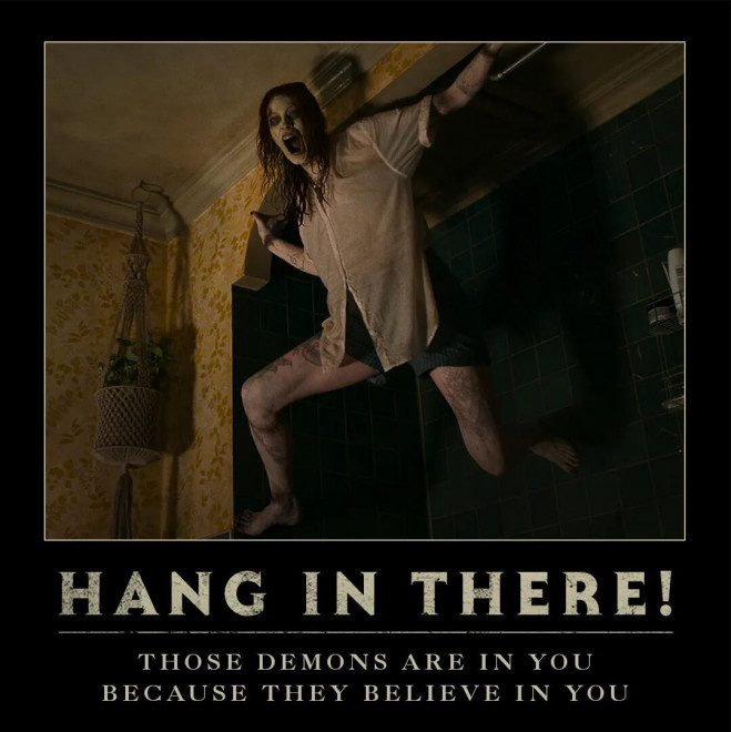此外,该海报的标题名为“挂在这儿”。在标题下面还有一句宣传语:“那些鬼怪就在你们之中,那是因为它们相信你们”。《鬼玩人》是备受观众爱戴的恐怖片。全系列因为各种脑洞的设计,时而轻松时而紧张的基调令大家印象深刻。《鬼玩人》系列虽然已经是上个世纪的电影了,但是实际上近些年也一直在拍摄新版和剧集,2013年导演费德·阿尔瓦雷兹拍了新版《鬼玩人》,被称之为《鬼玩人4》。而前两年《鬼玩人》还出了三季剧集,讲述了旧版鬼玩人的绝对主角“阿什”的后续故事,布鲁斯·坎贝尔回归主演。