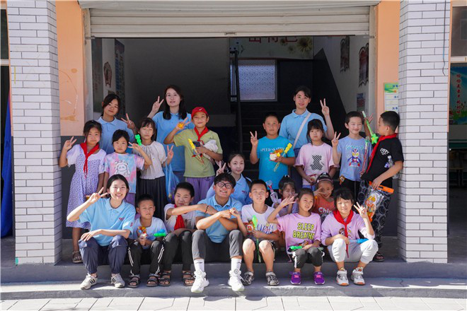 课堂之外,老师带着孩子们进入大自然采声,夏日蝉鸣、淙淙流水、树叶婆娑……这些富有生活气息的声音,被支教成员郑佳瑶改编成了一首属于孩子们自己的音乐。一方认真倾听,另一方应之以歌,支教团成员们相信,电影与音乐的相遇一定会为孩子们提供一双回顾生活之美、发觉生命之美、醒悟自身之美的眼睛。