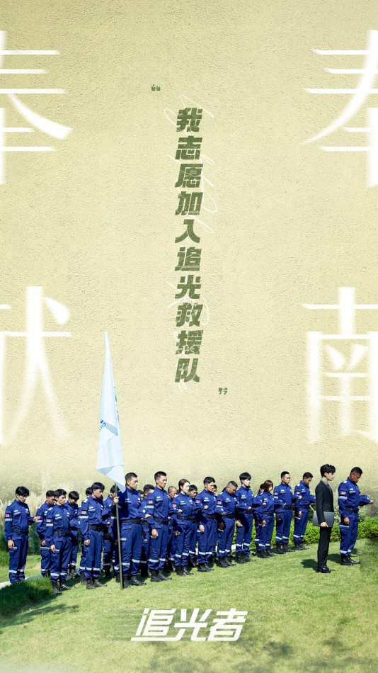 《追光者》开播首周反响热烈!故事讲述了罗本(罗云熙 饰)、展颜(吴倩 饰)、周明明(李明德 饰)、丁丁丁(李婷婷 饰)、熊非(徐绍瑛 饰)、罗源(杨安琪 饰)等人参与公益救援的故事。剧中,罗本、周明明、丁丁丁在机缘巧合下加入了“追光救援队”,他们在本职工作之余,与作为医生的展颜一起参与了不少救援行动,而每个人也在救援过程中,通过感受生命与爱的意义进行自我救赎,最终成功获得了友情和爱情。“追光救援队”作为公益救援组织,其队员们都有着“双重身份”,脱下救援服,他们是有着各自生活、在各自工作岗位上发光发热的普通人;穿上救援服,他们就是穿梭在事故灾难现场与死神赛跑、进行生命救援的英雄,这种设定让剧中的救援故事既充满热血又温暖感人。