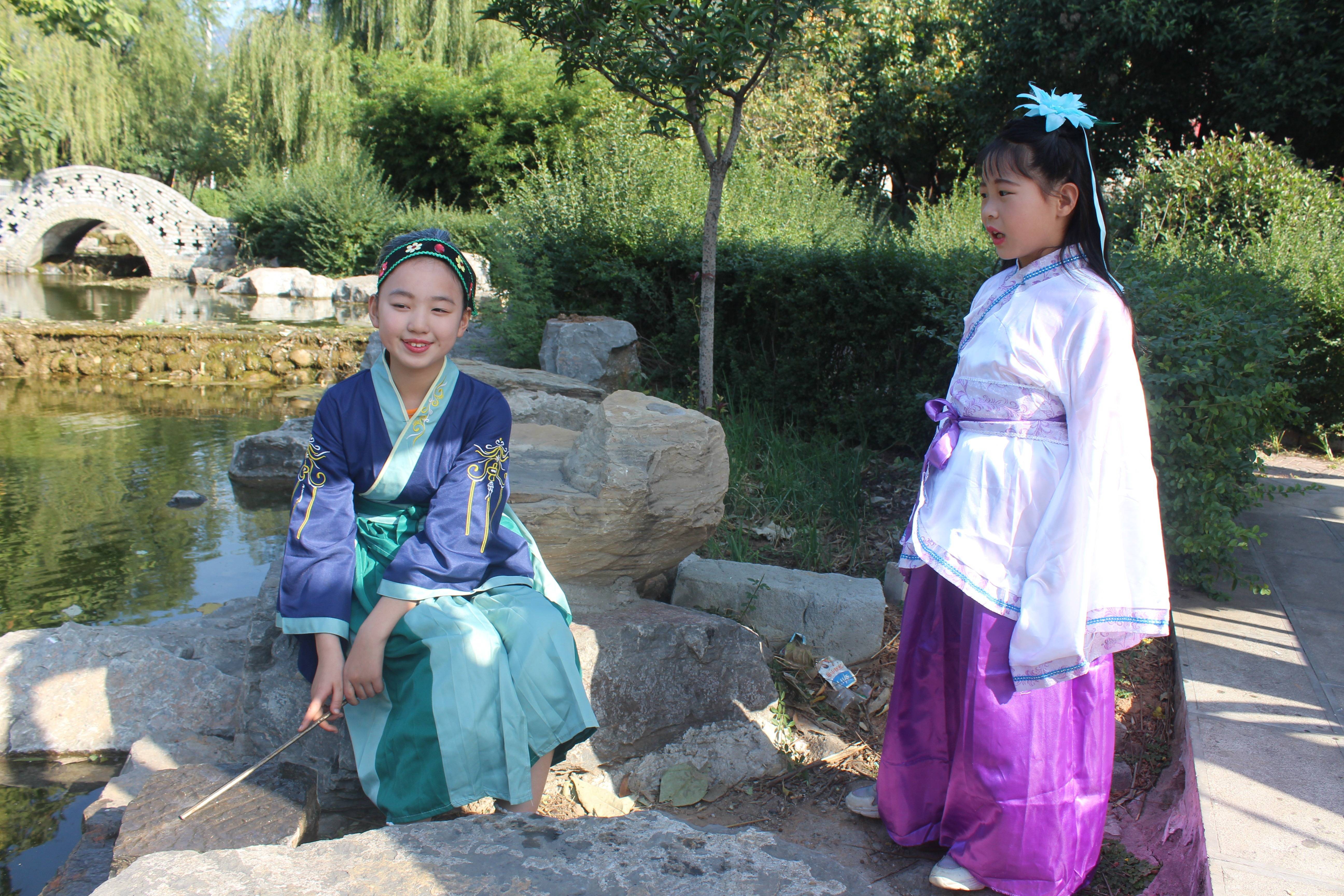 在拍摄现场,小演员们从化妆到服装,从早上拍到下午,从外景拍到内景,小演员们都能积极配合,认真的表演,在一天的时间内,配合摄制组完成了十一场戏,体现出了“不娇气,不放弃”的国学好少年精神。