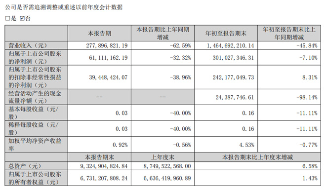 10月24日晚,华策影视股份发布2022年第三季度财报公告。根据公告内容显示,2022年前三季度,公司实现营业总收入14.65亿元,比上年同期减少45.84%;归属于上市公司股东的净利润3.01亿元,比上年同期减少7.10%。