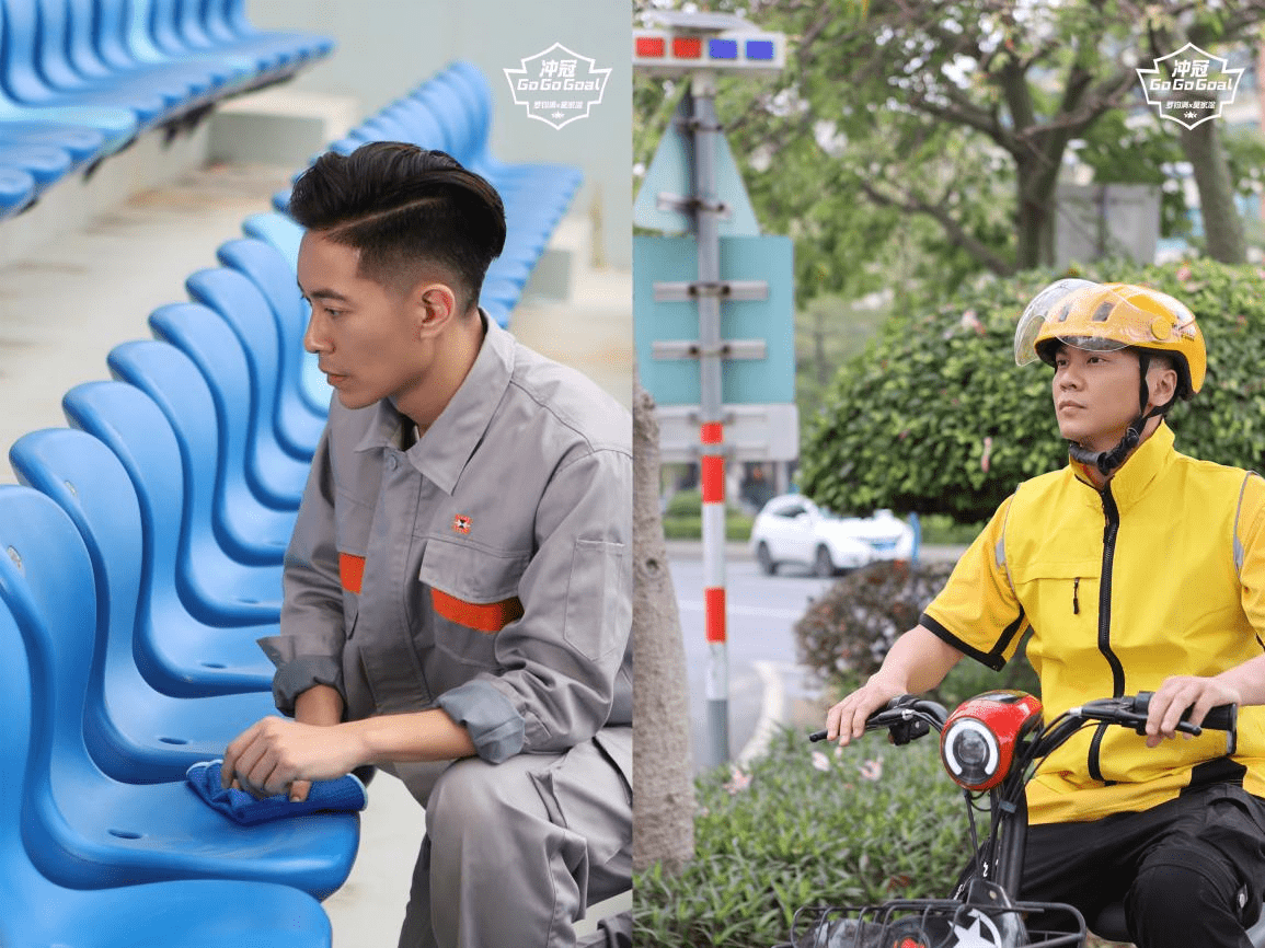 歌曲《冲冠Go Go Goal》花絮视频里,罗钧满和莫家淦分别以“保洁员”和“外卖员”的视角叙述他们的足球梦,以另一个身份诠释冲冠的意义。