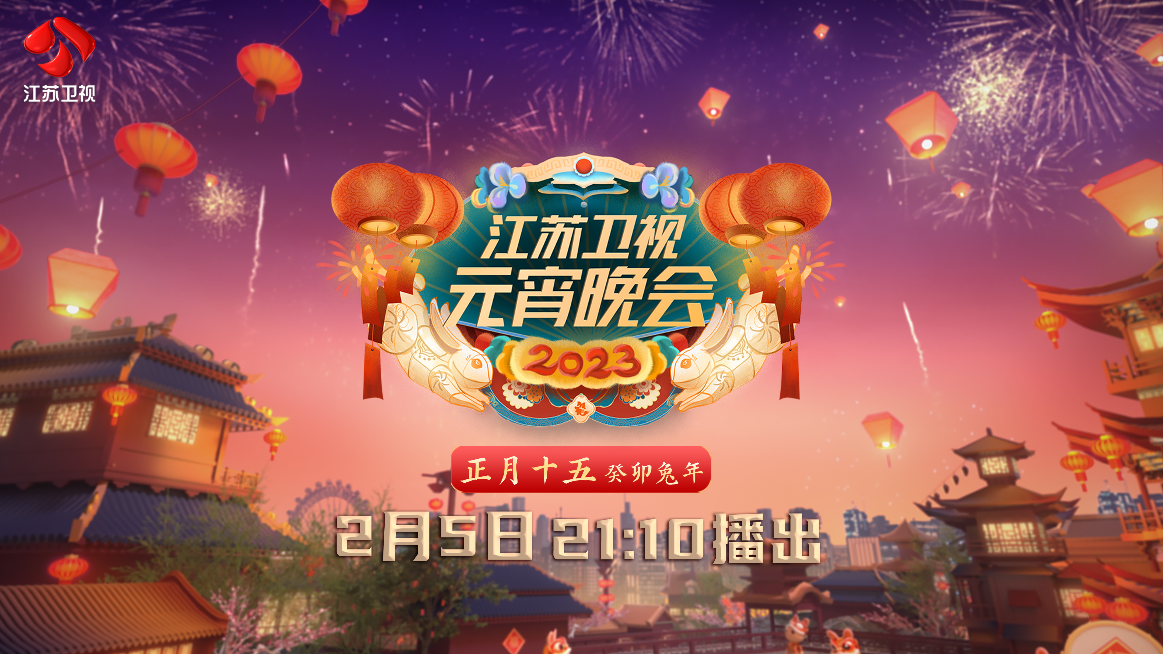 2月5日(正月十五)晚9:10,《2023江苏卫视元宵晚会》将与广大观众如期见面,为兔年春节画上圆满句号。
