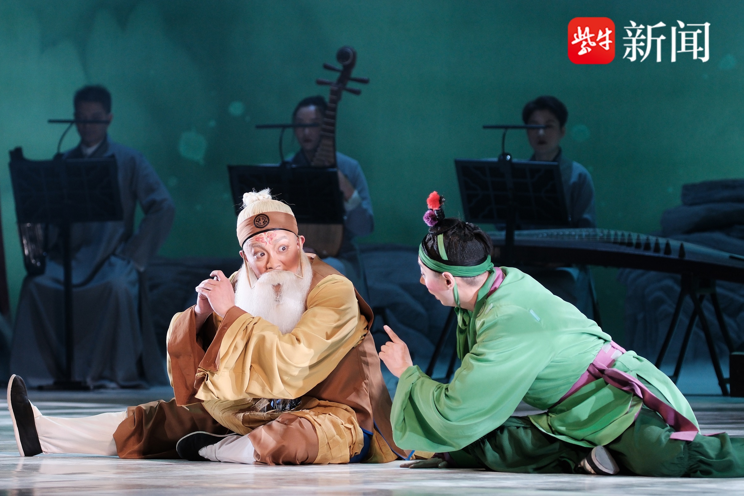 周鑫饰演的庄周,扮相沉稳,一派仙风道骨。随着他从“试妻”到被妻子田氏“反试”的情节发展,观众眼中的庄周也经历了从质疑情感到嫉怒羞恼再到豁达通透的心路历程。其间庄周的一点“酸漾”,被周鑫演绎得活灵活现,令现场观众为之捧腹,开怀大笑。