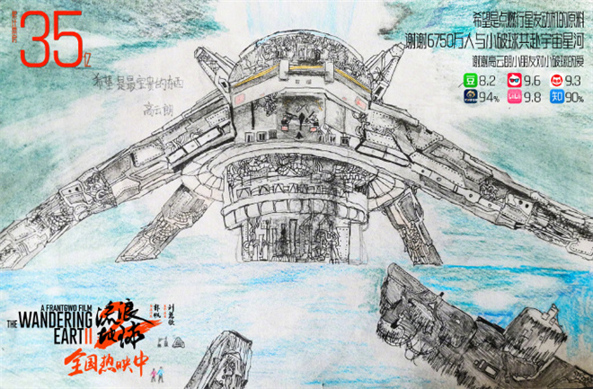 35亿的票房海报依然是出自小朋友的手绘画作,片方发文表示:“谢谢6750万人与小破球共赴宇宙星河!谢谢高云朗小朋友对小破球的爱!希望是点燃行星发动机的原料,是人们一直向前的动力,不管多遥远的终点,在奋力的前行中我们必能抵达!”