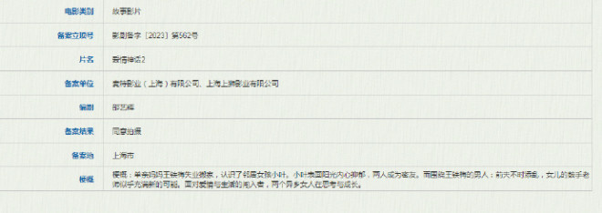 据悉,《爱情神话2》将于2023年春天上海开机.