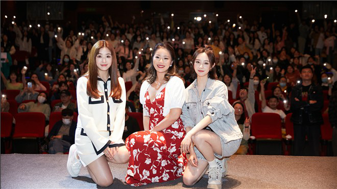 在安徽农业大学映后现场,李纯与王菊惊喜连线张含韵,姐妹在线“云”合体引现场欢呼不断。有学生积极分享自己与姐妹之间的暖心故事:“我因为是转学生的缘故很难融入集体,幸好有她们陪我走过黑暗,希望下一个十年我们还能一起走。”肺腑之言真诚且感人,李纯和王菊也不禁心生感触:“友情的力量永远令人动容,祝福你们的友谊长长久久。”现场气氛温馨又热烈。