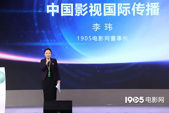1905电影网董事长李玮以《科技创新赋能中国影视国际传播》为题,介绍了中国影视内容海外传播的模式、主体、案例以及特征、机遇和挑战,并以1905电影网海外发行为案例,分享探索中国影视走出去的发展路径。