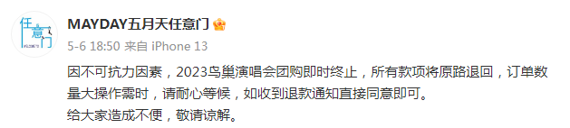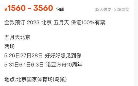 五月天为国内知名摇滚乐团,1997年由阿信等五名成员组成,代表作有《突然好想你》《你不是真正的快乐》等,在国内具有相当高的知名度和传唱度。2023年4月初,五月天北京演唱会审批通过,这次演唱会也是五月天即将达成北京鸟巢7年开场20场的传奇纪录演唱会,对此乐迷们热情高涨。此次北京演唱会分为两场,5月26日到28日连演三场《五月天•好好好想见到你》,5月31日、6月1日和6月3日三场为《五月天•诺亚方舟》,地点都在北京鸟巢。