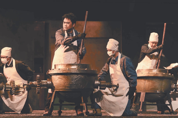 与歌剧跌宕的剧情相匹配,作曲家唐建平也创作了极具戏剧张力的音乐。全剧既有不少充满挑战的高音唱段,也有充满“氛围感”的旋律。221没有合适的炸药合成设备,工作人员就用人工土法搅拌,小危险不时发生,这时的音乐充满悬疑感,紧扣心弦。唐建平还在剧中融入了当地音乐元素,上半场音乐由藏族民歌引入,下半场则由青海花儿开启,而在剧中的联欢会上,藏族风格的音乐元素不时响起,也为梁振道与女友的意外相遇铺垫了情绪。