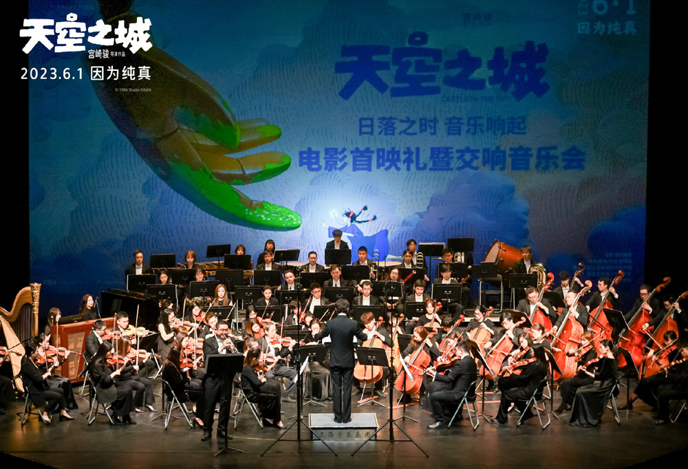 清亮的小号声骤然响起,音乐从演奏家们的指尖流淌而出,现场的很多观众都忍不住随《天空之城》熟悉而悠扬的旋律哼唱了起来。这样美好的一幕,就发生在昨天的电影《天空之城》首映礼暨交响音乐会上。片方邀请了上海爱乐乐团,连续演奏了《龙猫》《千与千寻》《崖上的波妞》《哈尔的移动城堡》《天空之城》五部宫崎骏经典动画中的配乐,交响音乐会以宫崎骏和久石让合作巅峰《天空之城》为结束,震撼非凡的高水准演出获得了全场观众雷动的掌声和欢呼。