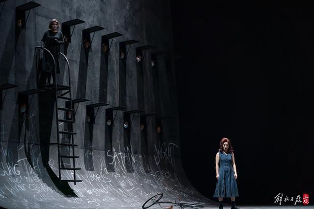 具有标识性的舞美设计,从天而降、进退自如的红色巨轮与横跨整个舞台的黑色船舱呼应,让充满电影感与德式冷峻工业风的视觉效果呈现在舞台之上。