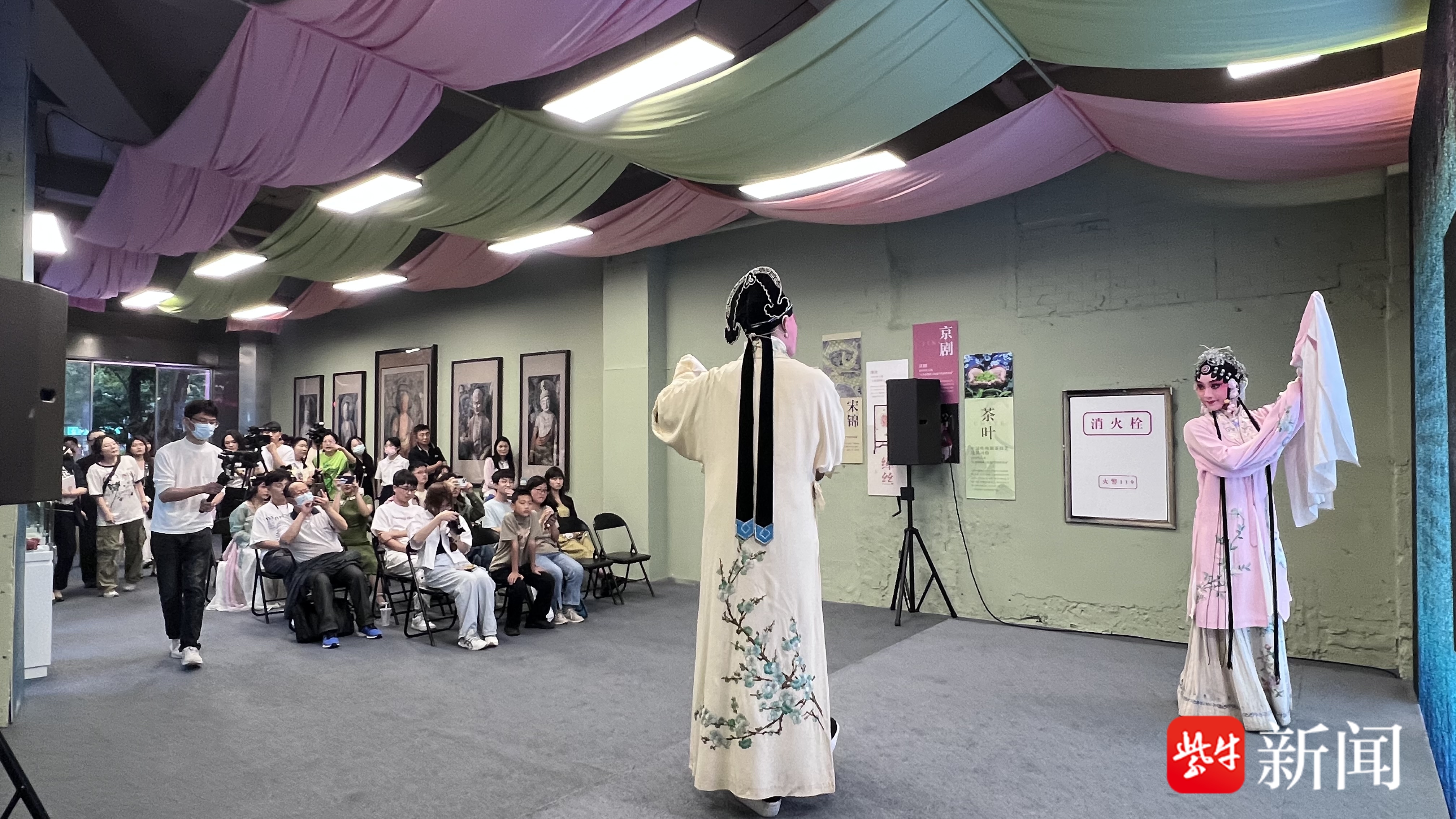 当天,在江苏省文化馆南楼门厅、三楼非遗空间、四楼展厅还同步开展了传统美食展示、非遗互动体验、传统戏剧赏析、茶艺表演以及农民画作品展览等丰富多彩的文化活动。青春与传统、城市与田园、继承与创新,多形式、多维度、多层次的创新设计,带给公众全新的文旅融合体验。