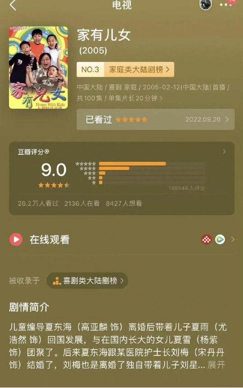 最近,家庭情景喜剧《家有儿女》疑似被“恶意”评分一事登上网络热搜。不少人对作品只打出一星。