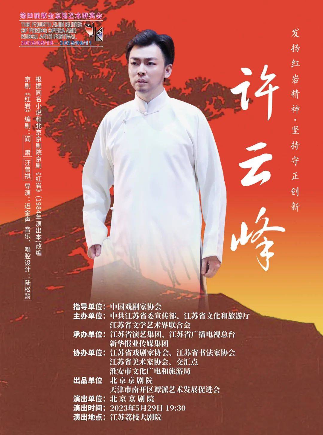 5月29日晚,根据同名小说和北京京剧院1984年演出版本的京剧《红岩》改编的现代京剧《许云峰》在荔枝大剧院演出,来自北京京剧院的京剧名家谭正岩、杜镇杰将同台飙戏,为南京观众展现历久弥新的红岩精神。