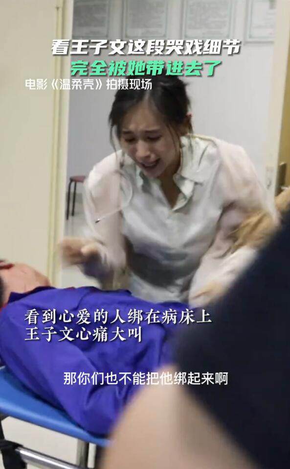 在拍摄现场,看到心爱的人被绑在病床上,王子文心痛大叫,双眼因流泪而红肿,嘴唇不住的颤动,似乎也感受到了爱人遭受的痛苦。