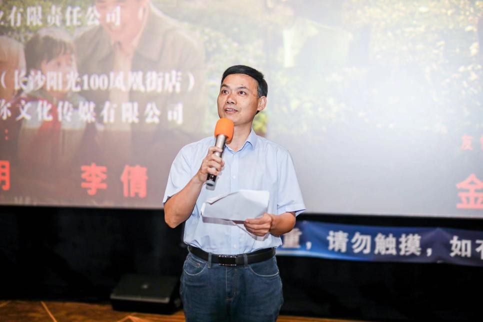 湖南省委宣传部电影处处长欧阳文风在现场讲到“电影市场受疫情的影响,《爸爸,我懂你了》拍摄的不容易和艰辛,对他们的坚持给予鼓励和认可”。